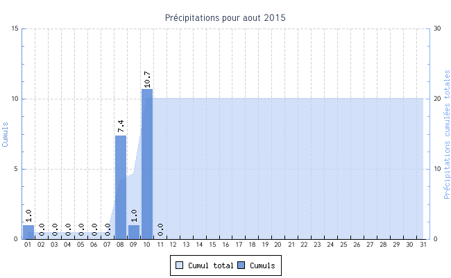 | Jour | Température | Vent | Pluie | |||